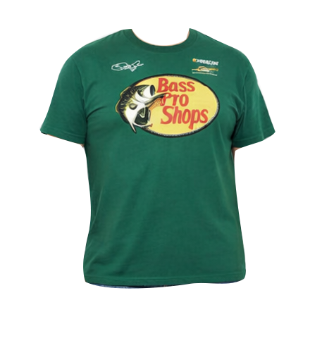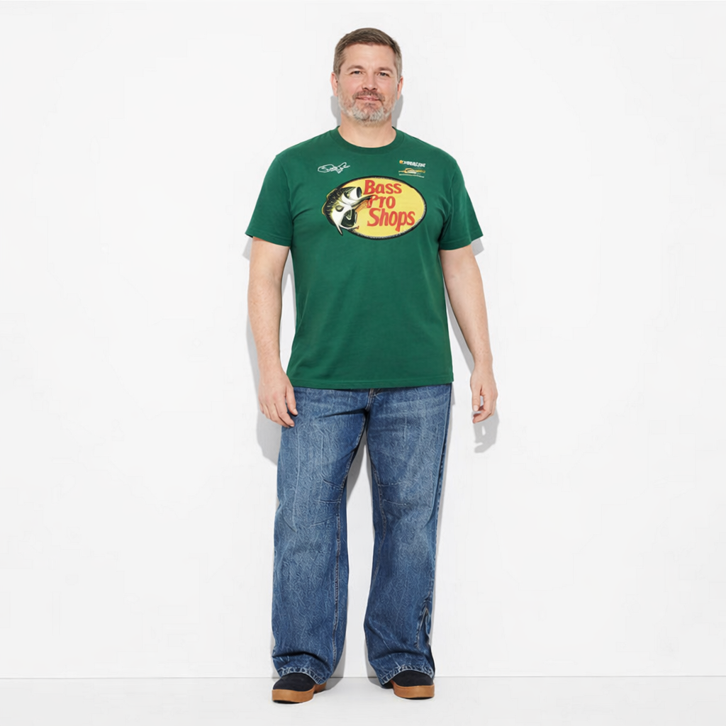 Perusmallinen metsän vihreä t-paita painatuksilla.
