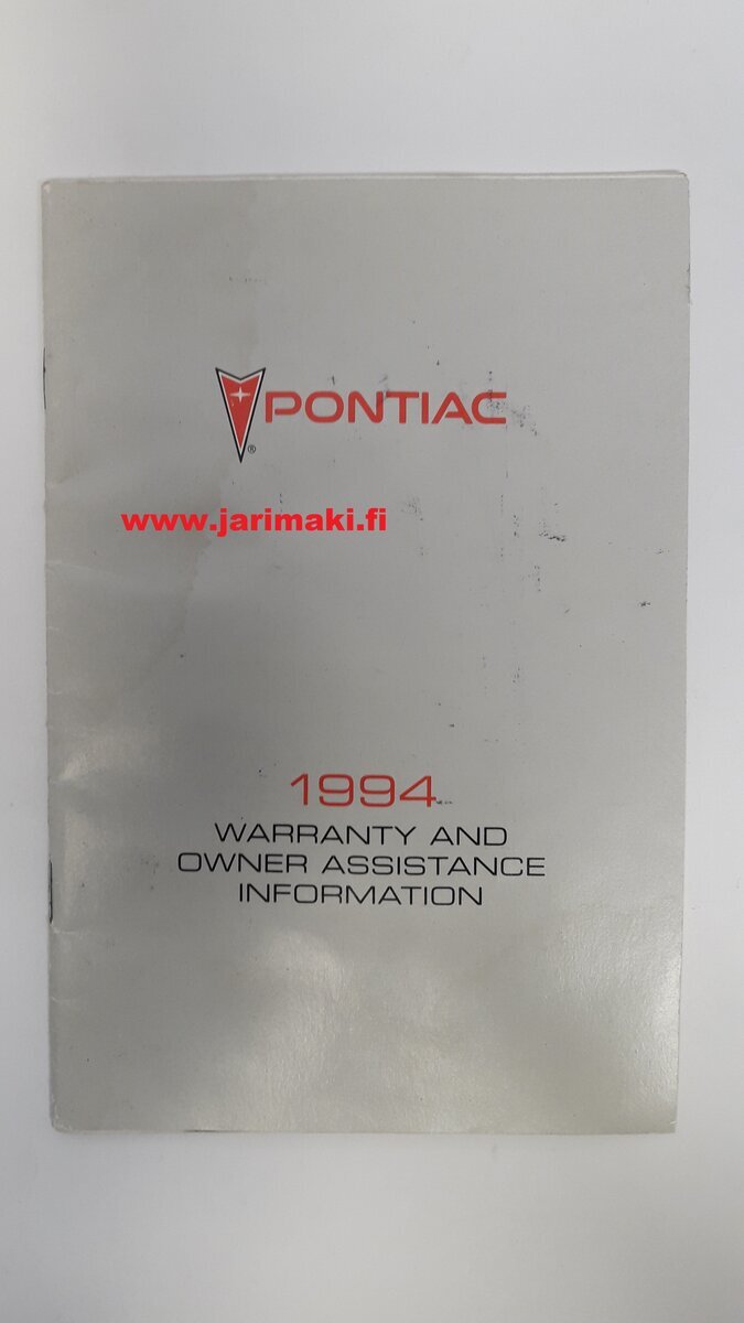 Takuu ja omistajan tuki ohjekirja käytetty Englanniksi Pontiac 1994