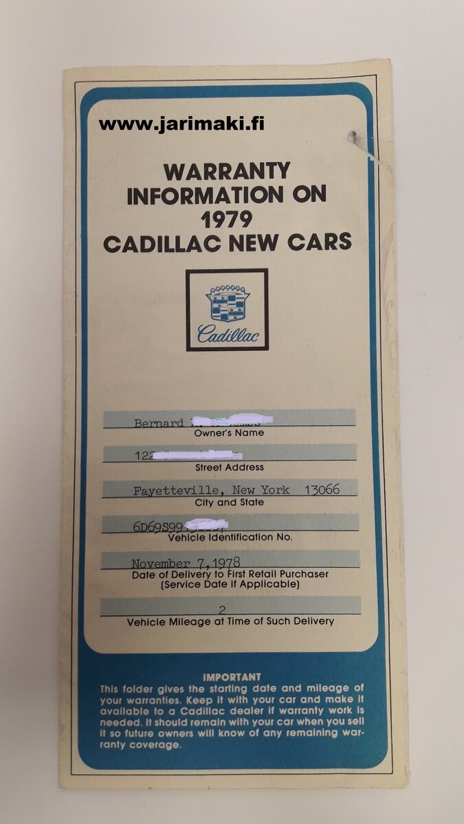 Takuukirja käytetty Englanniksi Cadillac 1979