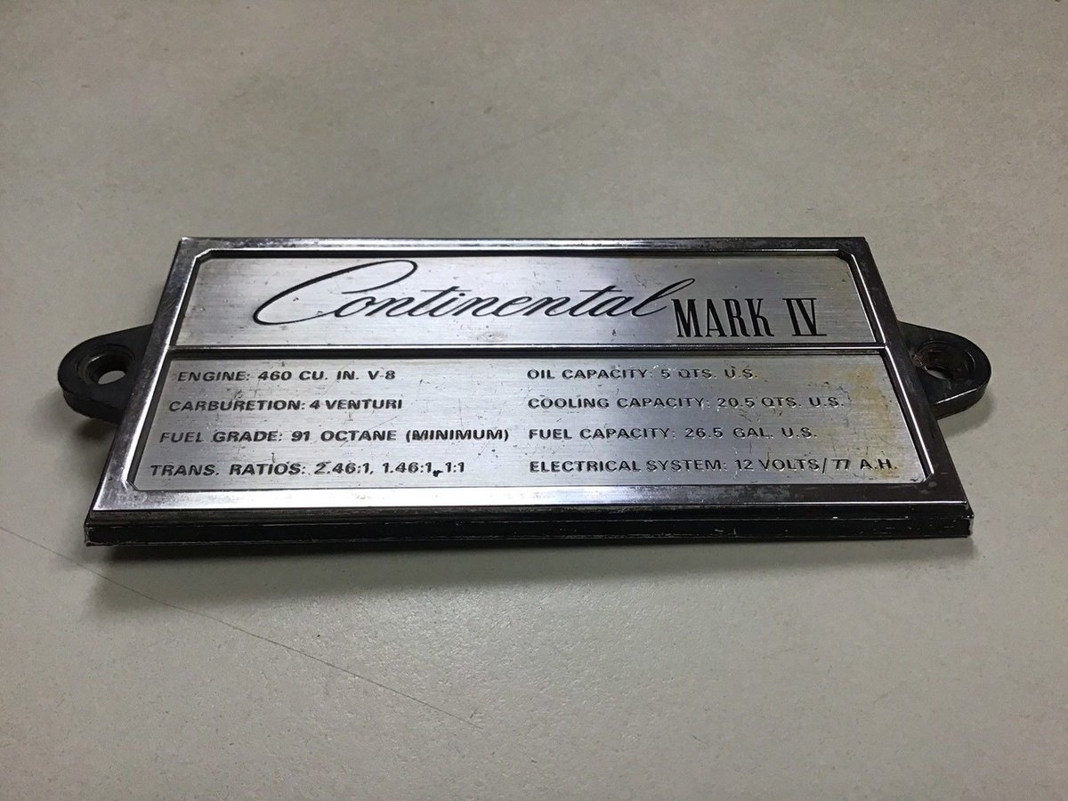 Tunniste laatta käytetty Lincoln Continental Mar IV 1969-1972