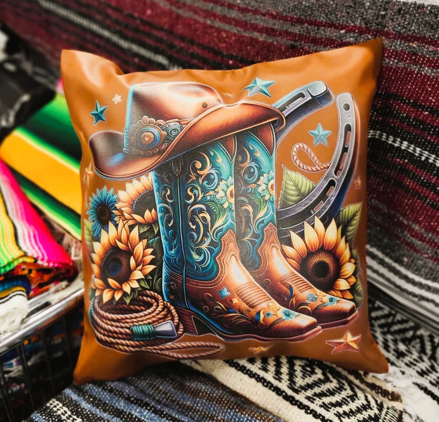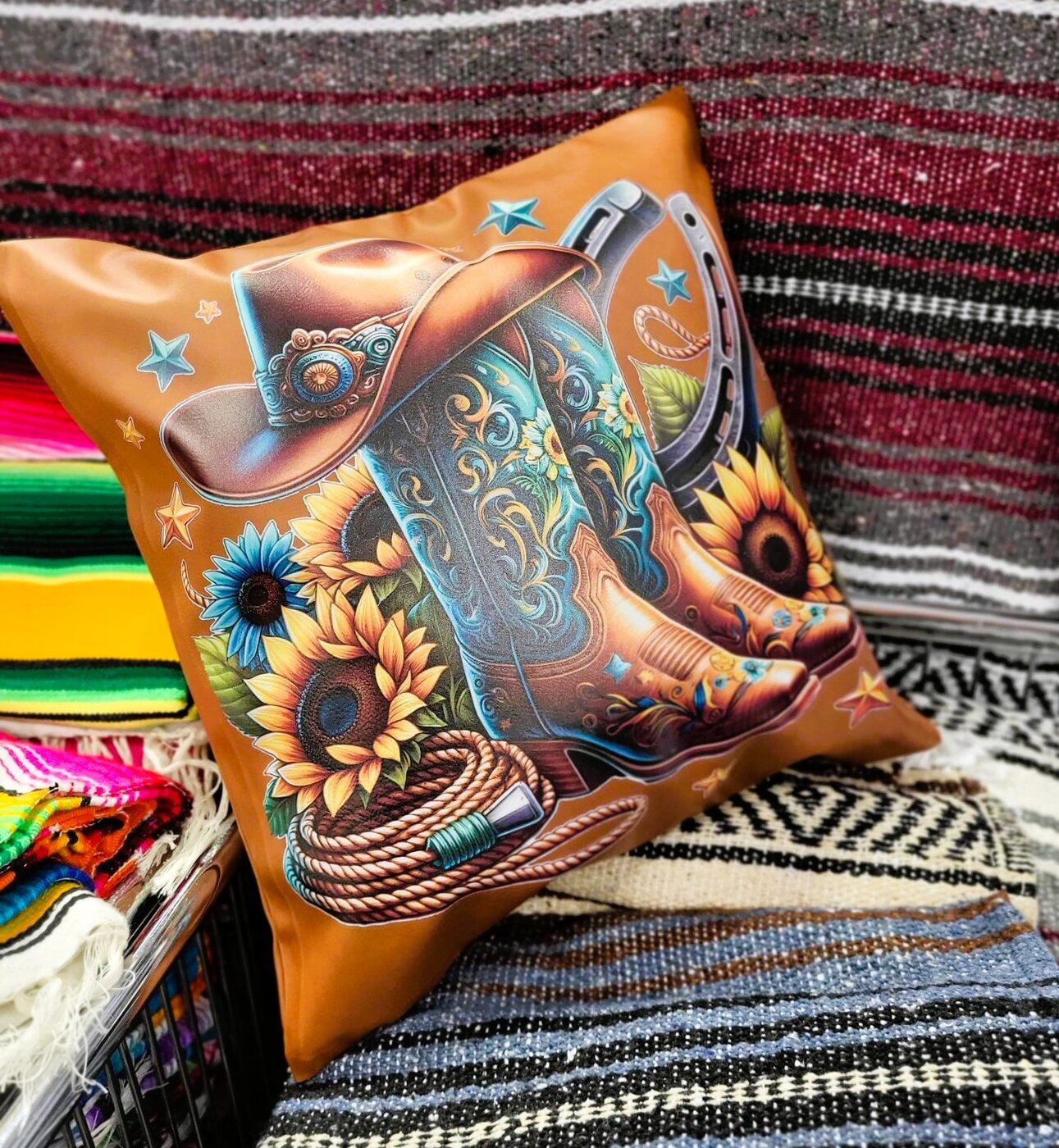 Keinonahkainen tyynynpäällinen, jossa upea western-aiheinen kuva!