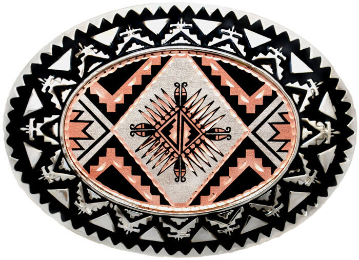 Kuparin- ja krominvärinen Aztec Sunburst -vyönsolki.