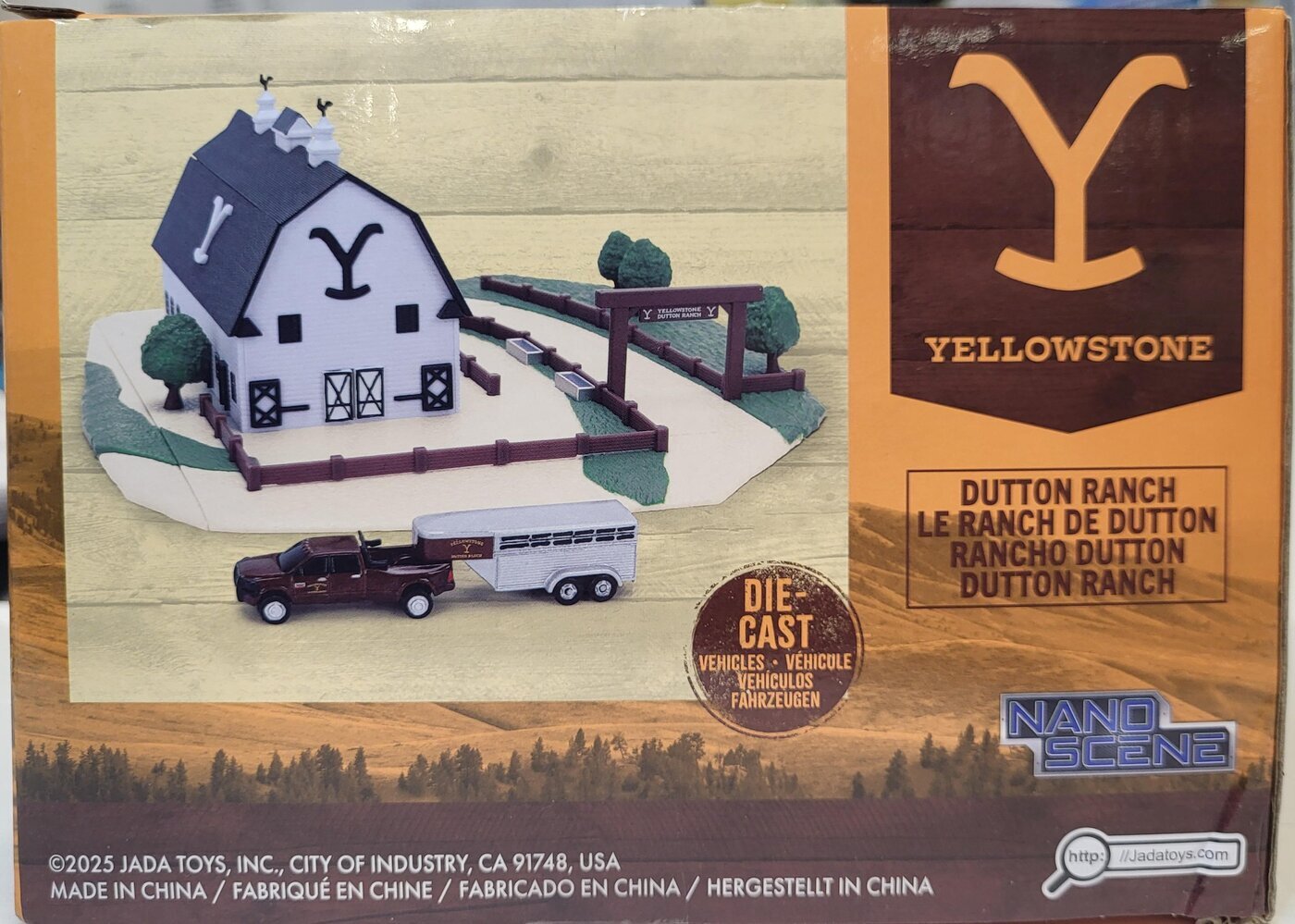 13-osainen pienoismalli on tarkka jäljitelmä kuuluisan Dutton Ranchin ympäristöstä, mukana myös auto ja eläintraileri.